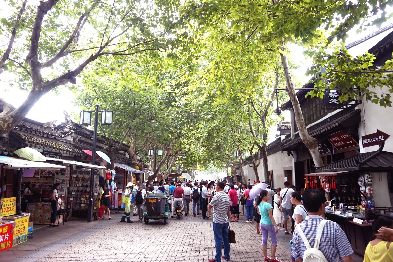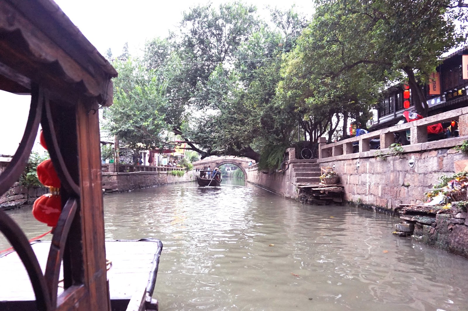 - Tour the small canals within the city walls. Just like in Venice, you can hire a guy to give you a tour of the canals. As the price isn’t negotiable, we teamed up with two Chinese couples, and ended up only paying 40 ¥ for the two of us. If you got more money on your hands, you can also pay the boatman to sing traditional Suzhou songs.