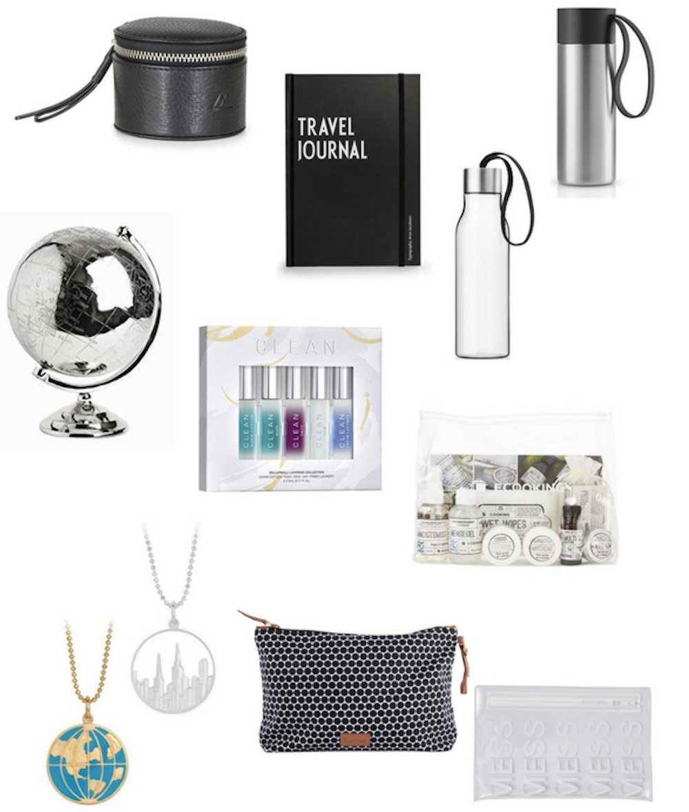 Når man har en stor rejselyst, er det altid en vinder, hvis man kan tage sine med sig på fremtidige rejser. Derfor er alle tingene ovenfor, udover den smukke Margit Brandt globus, særligt velegnede til kufferten. Rejsestørrelser til toilettasken er altid en sikker vinder, og her har jeg valgt lækre roll-on parfumer fra Clean samt et fuldt rensesæt fra Ecooking, der tilmed kommer i en praktisk klar taske, som er perfekt til håndbagagen. Skal du eller gavemodtageren have noget at opbevare alle skønhedsprodukterne i, synes jeg toilettasken fra Mette Ditmer og den klare taske fra Nomess er så fine. Jeg har altid en vandflaske med i håndbagagen, så jeg ikke skal betale en formue for en flaske vand i lufthavnen, hvorfor jeg gerne så en af de ovenstående fra Eva Solo ligge til mig under juletræet i år. Pernille Corydon har lavet to virkelig smukke halskæder, som passer perfekt til globetrotteren eller til den, der har en forkærlighed for verdens pulserende storbyer. Dertil kunne man passende købe et rejsesmykkeskrin fra Markberg, så smykkerne kan komme med overalt i verden. Sidst men ikke mindst skal man have noget at skrive alle sine rejsetanker og oplevelser i. Nogen gør det online, men jeg er nu altså stadig til den gammeldags form, og jeg skal absolut ud og have fat i rejsebogen fra Design Letters til min næste rejse!